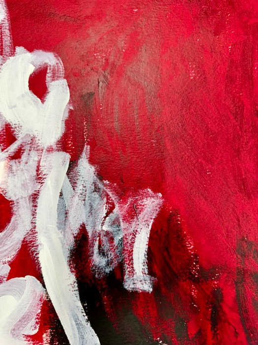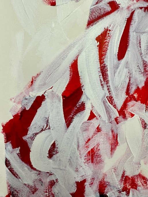 “Chasing thoughts” captures the restless momentum of the mind, where clarity flickers and dissolves within shifting layers of red, black, and white. The gestures suggest thought as something both fleeting and insistent, a current that resists being held. The work reflects on the human condition of seeking order in the intangible, tracing the energy of ideas as they appear, vanish, and return in new forms.