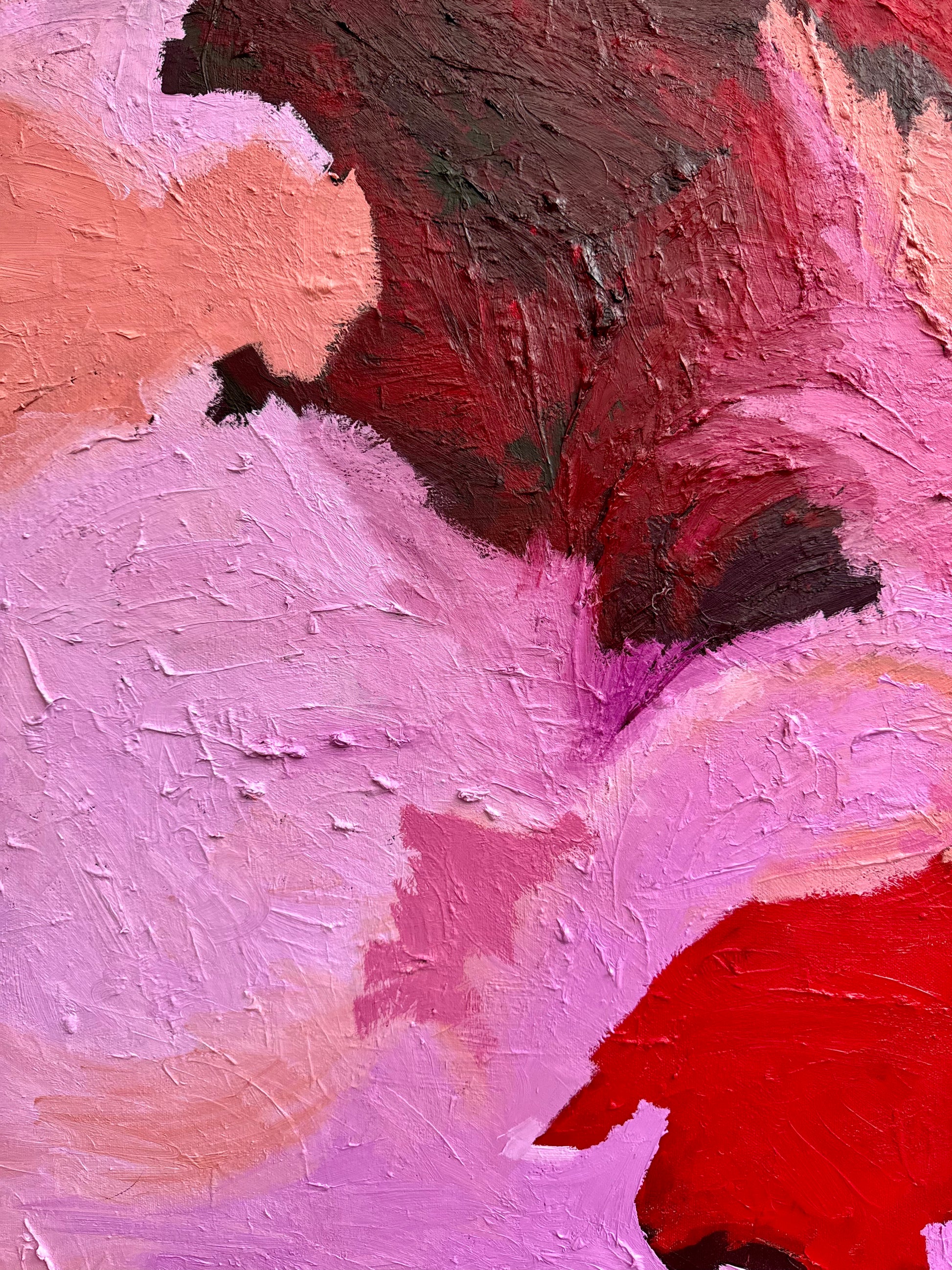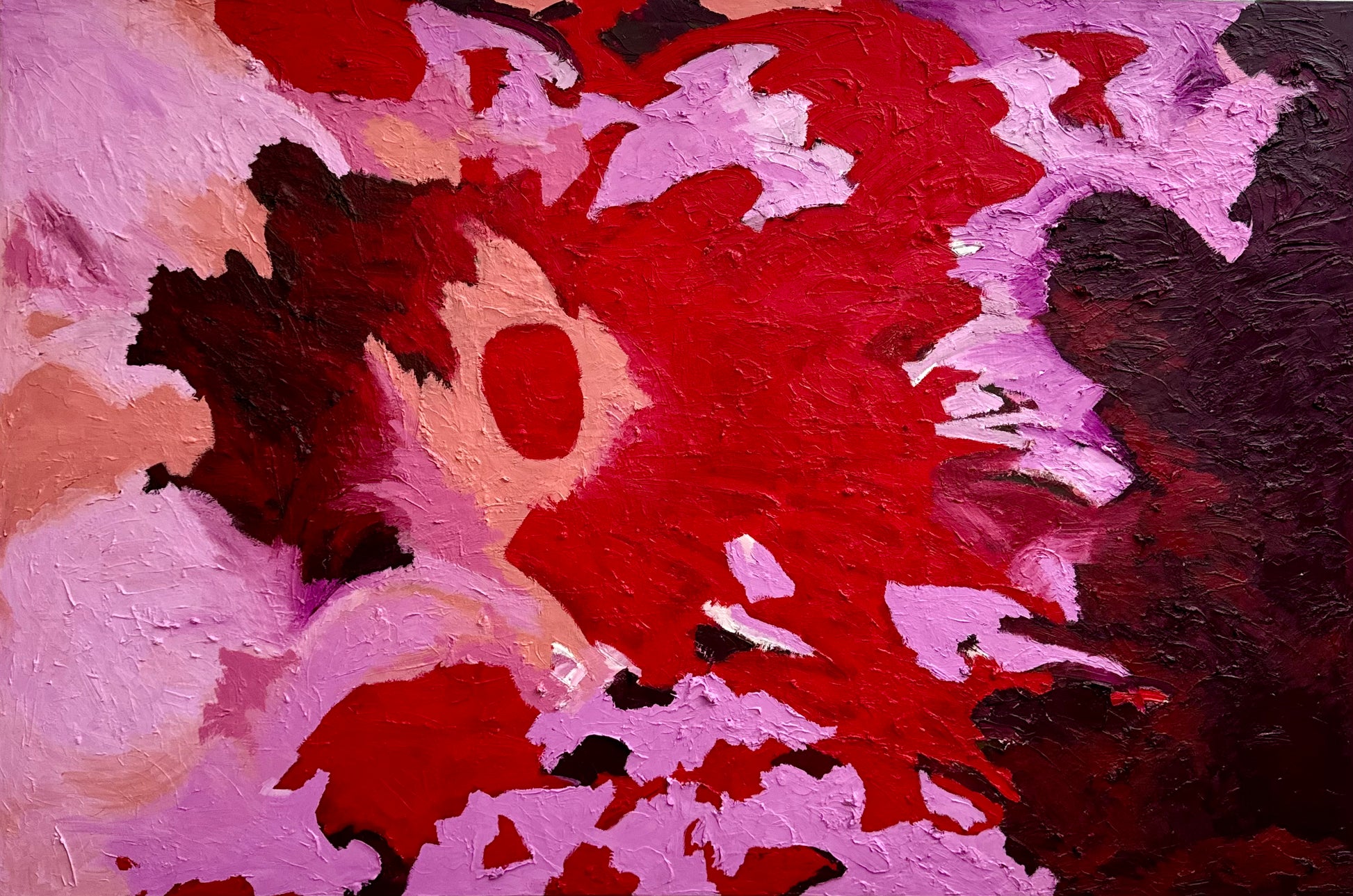 “There is before and then there is after” meditates on rupture and transformation, the moments that divide time into a “then” and a “now.” Expansive fields of crimson and violet meet softer gradients of pink, suggesting both fracture and renewal. The work reflects on the inevitability of change, capturing how every turning point carries both loss and the possibility of becoming.